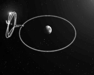 这是我国探月工程三期再入返回飞行器服务舱绕飞地月L2点示意图。