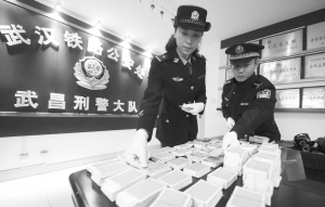 当日,武汉铁路警方对外宣布,经过缜密侦查,成功捣毁一家族式制贩假火车票窝点,共查获伪造火车票18张、空白火车票6005张、废旧火车票275张、伪造的发票专用章30个等,以及电脑、打印机等一批作案工具。武铁警方表示,春运临近,警方将加大力度,打击涉及票证的各类不法行为。新华社记者 程敏 摄