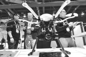1月6日,在美国拉斯韦加斯举行的2015年国际消费电子展上,一家中国企业展示一种可携带10公斤重摄影器材的无人机。