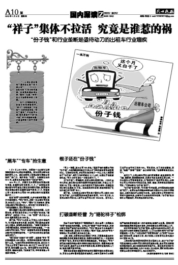 “祥子”集体不拉活 究竟是谁惹的祸 “份子钱”和行业垄断是亟待动刀的出租车行业痼疾