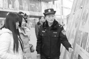 1月10日,是全国第29个“110宣传日”。周口市公安局近百名民警和消防官兵走上街头,展开以“110与您携手共创平安”为主题的宣传活动,为群众讲解如何报警。民警共向群众发放宣传资料3000多份,解答群众咨询200多人次。据了解,2014年周口市区公安机关指挥中心共接警914734起、有效报警225698起。晚报记者 朱东一 摄