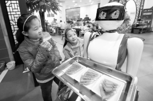近日,河南许昌一家火锅店引进一台智能机器人,在餐厅“跑堂”,吸引了众多市民游客前来“尝鲜”。据介绍,这台智能机器人可以给客人送菜、唱歌助兴,价值8万余元。