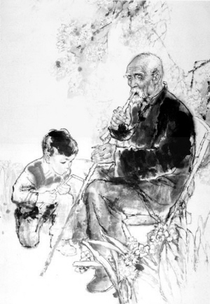 腊月二十八那天,父亲突然打来电话:“小雅,你姥爷快不行了……”我颤颤巍巍地骑着车子来到姥爷家,一进院,就看到了院里赫然站立着的巨大的棺材,庭院里到处弥漫着悲伤肃穆凝重的气氛,一如那天阴沉沉的天气!屋里的灯光朦朦胧胧的,方桌上开着一台电暖扇,姥爷躺在床上纹丝不动,他的脸颊深深地凹陷着,颧骨很高,浑浊发黄的眼睛一直盯着房顶,干燥的嘴唇微微张开着,急促地喘着气……就在那一天,姥爷走了,连新年都没有盼到,享年80岁。