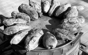 钱立茂说,烤红薯的原材料一定要选好。在郸城、淮阳、沈丘这一带,有人喜欢口感干面一点的烤红薯,但更多的食客还是喜欢香甜型入口即化的。烤红薯最重要的是火候的掌握,红薯要慢慢烤,才会香甜可口,皮焦瓤软而且皮上还沾着糖稀的最好卖。买红薯吃的人大多数是行色匆匆的路人,没有足够的耐心和时间守在红薯摊那里等着红薯烤好,所以卖红薯的人要事先把红薯烤好。吃烤红薯要吃热乎乎的、稍有点烫嘴的,且表皮皱巴巴的,一揭皮就冒热气的。放凉的烤红薯,吃在嘴里不香不说,闹不好还会肚子疼。用棉被一类的东西给烤好的红薯保温,拿在手里的红薯水塌塌的,吃起来更是瘪寡无味,味同嚼蜡。所以,烤好的红薯保温很重要,用来保温的洞口,离火源稍微远点就行了。