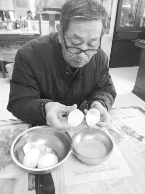 针对张先生的遭遇,记者采访了周口市沙颍河边一位有着10多年养鸭经验的王女士。她说,如果买鸭蛋时留个心眼儿,真假鸭蛋一眼就能看出来。