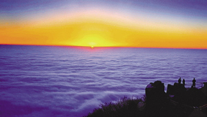 黄山云海可分东海、南海、西海、北海和天海五处,白鹅岭、玉屏楼、排云亭、清凉台和光明顶分别为“五海”的最佳观赏点,“五海”各具特色,无一雷同。想观赏黄山云海的全景,则要去高旷平坦的光明顶,其与天海近在咫尺,同时可将其他四海尽收眼底。