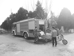 为确保朱庄200多户居民春节前正常用水,周口“银龙”在进行供水管网改造期间,多方同时施工,加班加点以缩短工期。并积极与周口市消防支队沟通协调,借用消防车辆连续不断向停水区域居民上门送水(如图),最大程度保障居民基本生活用水少受影响。