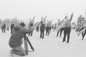 本报讯 1月20日,在市文化艺术中心广场,河南电视台正在拍摄河南省春节联欢晚会的外景地节目,节目的主角就是每天活跃在周口各个社区爱跳舞的市民(如图)。