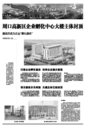 周口高新区企业孵化中心大楼主体封顶