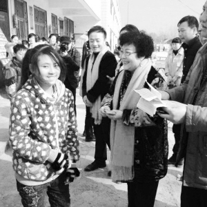 在齐老一中,爱心人士表演了歌曲、模仿秀、魔术等精彩节目,特别是72岁的豫剧表演艺术家杨美荣演唱的《穆桂英挂帅》选段,赢得了现场师生的掌声和喝彩。