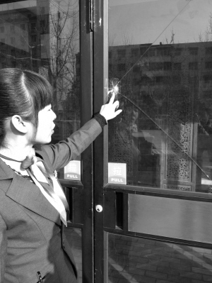 该店负责人告诉记者,这些玻璃之所以没有破碎,是因为这里的玻璃贴了防爆膜。如今这些玻璃上出现这么多洞,已无法使用,全部更换要花不少钱。