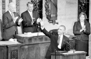 1月20日,美国总统奥巴马(前)在华盛顿国会山发表国情咨文演说。