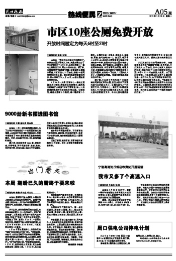 市区10座公厕免费开放