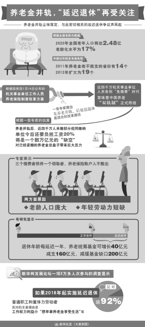 有研究显示,退休年龄每延迟一年,养老统筹基金可增长40亿元,减支160亿元,减缓基金缺口200亿元。