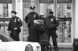 1月25日,警察在纽约曼哈顿发生枪击案的商店外警戒。