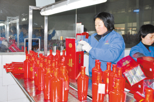 春节来临,河南四五酒业产销两旺,部分中低端产品供不应求。公司就此于日前召开部门负责人会议,就春节前市场对四五酒的需求作出评估,决定加班生产80万箱,以满足消费者的需求。 记者 付永奇 摄