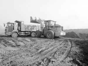 还未到达施工现场,记者首先看到一个展示未来港口码头场景的效果图,图上现代化的码头和宁静的沙颍河相映成彰,让人浮想联翩。来到施工现场,伴随着机器的轰鸣声,记者看到一辆大型挖掘机在挖土方,来往的工程车辆则频繁地运送土方。在一旁的地面上,分布着五六个已经挖了深约1米多、呈长方形的池子,池子旁边堆满了泥土。