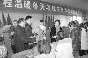 近日,市委办公室、团市委在项城市高寺镇举办了“希望工程 温暖冬天”爱心捐助活动。周口市银监局携8家银行为高寺镇220名贫困学子送去了价值3.5万元的羽绒服、棉手套等过冬暖具及书包等学习用具。