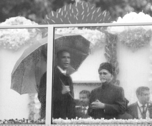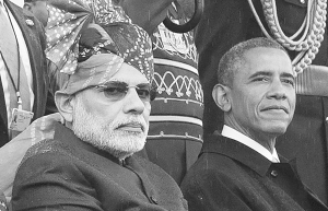 莫迪与奥巴马一同坐在防弹玻璃制成的密闭隔间里观看这次阅兵仪式。