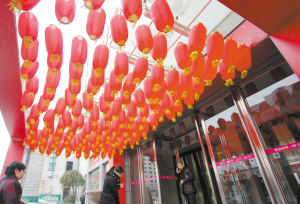 羊年春节日渐临近,年味越来越浓。记者昨日在我巿一大型商场门前看到,大红灯笼高高挂,充满了喜庆气氛。