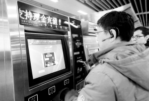 1月28日,市民在上海徐家汇地铁站内使用交通卡自助售退卡设备进行充值。