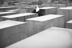 1月27日,在德国柏林,一名游客走过犹太人纪念碑群。