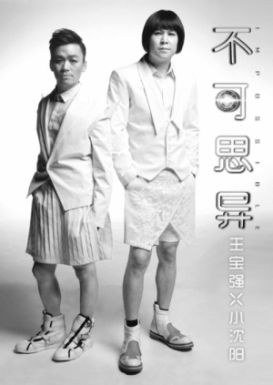 定于2015年上映,由孙周执导的3D奇幻喜剧电影《不可思异》发布首款宣传照,主演王宝强和小沈阳以“裙装男神”的造型挑战韩国天团,认真严肃地摆出了超模的“高冷”pose。
