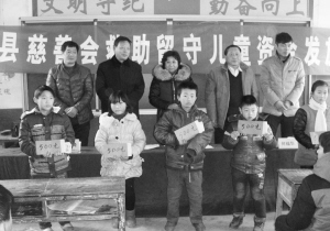 2月3日,郸城县慈善会会长赵爱梅等人来到该县白马镇实验小学,给这里的36名困难留守儿童每人送去500元现金和一套棉衣,让他们开心过年。