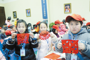 “将纸对折、再折……剪刀要斜着剪下去……”从简单的五角星到复杂的金草花,小记者一边听一边认真地剪,并相互比着谁剪得最好最快,却没有注意到自己的小手已经被手中的红纸染红了,等到察觉时,大家都相视一笑。周口实验小学的史钟钦和周口六一路小学的李哲帆是在参加一次小记者活动时认识的,现在成了一对好朋友。刚开始拿起剪刀剪时,他俩都有点力不从心,在老师的指导下,二人互相提示、友好合作,待将手中剪裁的红纸小心翼翼展开时,一张非常美丽好看的窗花就呈现在大家面前。“过去我可真小看了剪纸,以为只要一把剪刀一张纸就行,今天才知道不好剪!”“才剪一会儿,我手心就出汗了,这么多好作品需要花费多少工夫呀?”小记者们情不自禁地发表着各自的感想。还有一名小记者对老师说:“今天,我发现了剪纸的深奥,它靠的不仅是手上的功夫,更需要耐心、仔细。我要将我的作品送给妈妈。”