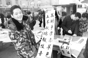 夏雁如说,这是他第一次参加义写春联活动,觉得非常有意义。一个上午,夏雁如一共写了30多幅对联,每一位居民都满意而归。