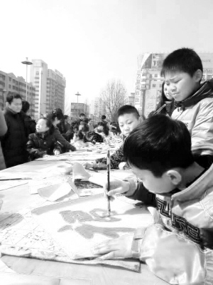 2月12日上午,周口市区五一广场上人头攒动,几十名小小“书法家”云集于此为市民书写春联。大家可别小瞧这些孩子,他们将新年美好的祝福倾注于笔端,书写出一幅幅端庄美观、寓意吉祥的春联,令在场市民交口称赞。晚报记者 张志新 摄