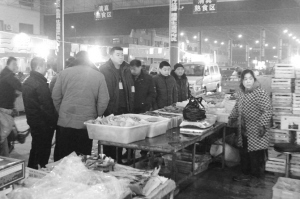 做采访计划时得知黄淮大市场每天凌晨5点就开始忙,于是,记者起了个大早,昨日凌晨4时40分赶到黄淮大市场水产区。不料,因新年临近,这里的“战斗”早在半小时间前已打响,总面积2.2万平方米、拥有360个门店的偌大的市场灯火通明、车流如水、商贾云集,一派繁忙的景象。