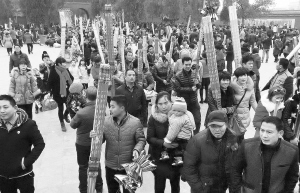 大年初一,在淮阳太昊陵景区里,祈福敬香的游客、香客人潮涌动。新年第一天,人们进香朝拜,祈求幸福安康、国富民强。晚报记者 朱海龙 摄