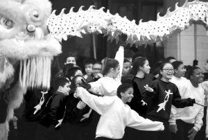 当天,为庆祝中国传统新春佳节,80名来自全美舞蹈协会的美国青少年在纽约林肯中心表演中国舞蹈。这一活动作为纽约爱乐中国新年音乐会的一部分在户外向公众开放。