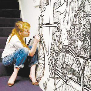 艺术家们把空白墙面当成画布,只用一支笔就能手绘出极其丰富又细腻的大幅画面。