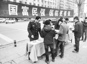 23日下午,川汇区人武部在街头宣传征兵,适龄青年驻足了解兵役登记及应征入伍情况。据介绍,川汇区人武部利用春节假期开展兵役登记和应征入伍宣传工作,主要是为2015年的征兵工作做准备。 晚报记者 朱东一 摄