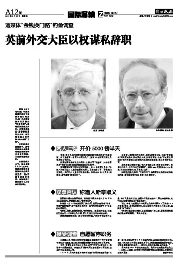英前外交大臣以权谋私辞职