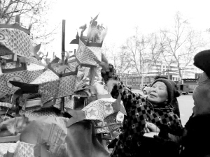在中州大道上,来自淮阳的李先生在售卖手工花灯,这些花灯是由纸、铁丝、小木板制作而成,简洁、复古、便宜,售价5元。一位购买手工花灯的市民说,看到这些灯,瞬间勾起了儿时的美好回忆。同样,商水固墙76岁老农智留成用秸秆、纸、彩色鸡毛等制成的“鱼”灯也受到市民热捧。市民黄女士选购手工花灯时说:“我小时候就买过这种花灯,到现在还记忆犹新,今天正好遇见了,怎么也得给孩子买一个。”