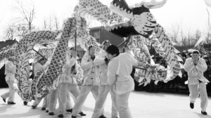 当日10时许,伴随着震天的锣鼓声,舞龙的人迈着有力的步子走进广场,大气磅礴、美轮美奂的“龙”在锣鼓声、鞭炮声、村民的喝彩声中,追捕着黄色的宝珠腾飞跳跃,忽而龙头高耸似冲云霄,好似蛟龙狂舞,忽而转头底下,像入海破浪,昂首摆尾,这样高低错落,蜿蜒盘旋的精湛表演,让逍遥镇的老人、小孩陶醉于其中。