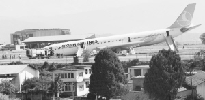 3月4日,一架土耳其航空公司客机在尼泊尔首都加德满都特里布万国际机场降落时冲出跑道,所幸没有造成人员伤亡。新华社发