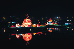 3月5日是元宵节,夜幕下的中心城区绚丽多彩、景色旖旎,人们纷纷走上街头,人潮车流汇聚在一起,赏灯观景一片热闹。晚报记者 朱海龙 摄