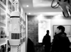 3月8日,人们在“中国梦”文化馆内参观火箭模型。