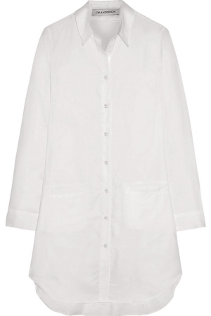 近几年来,设计师赋予了纯白衬衫新的生命力,将原本的短款纯白衬衫设计成长款纯白衬衫,让它既可以充当连衣裙的功能,又可以继续担任原本的白衬衫角色,只要将其束进裤子中便可,而时尚达人们自然也多了一个喜爱纯白衬衫的理由。
