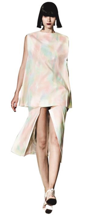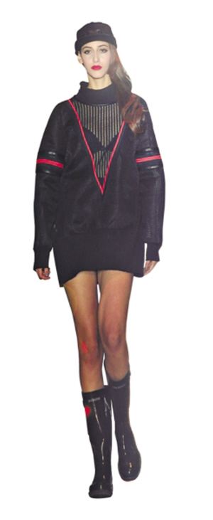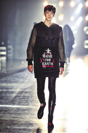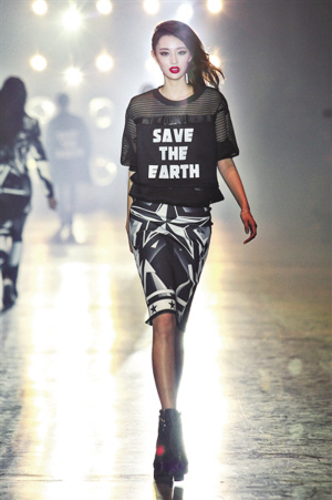 “环保”和“中国制造”可谓张驰设计中一直贯穿的精神,本季继续采用自2011年就开始的“防毒面具”的Chi Zhang品牌主题元素,但在面料的运用及整体风格上有了一定突破。除去设计师擅长的印花元素外,还进行了多种面料拼接的突破,整个系列运用的面料有网纱、潜水服面料、空气层面料等共计20余种。为适应市场化需求,本季大部分单品都用了现在十分热门的字母胶印,几何图形拼接,颜色拼接等。