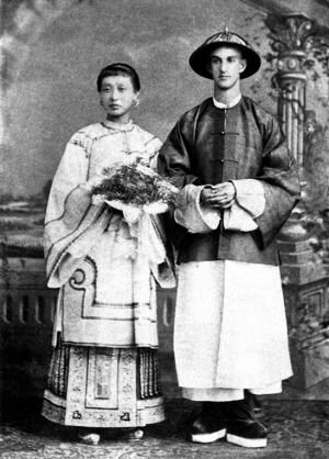 这张特别的结婚照,不仅因为它年代比较久(拍摄于1888年);也不仅因为它是在经历一百多年的风雨后,从大洋彼岸的美国重新回到中国。主要原因是照片上的人物和他们的婚姻在上海历史、甚至中国教育史上有着非凡影响。照片上的新郎是大名鼎鼎的圣约翰大学校长——卜肪济,新娘是近代上海著名的女子中学——圣玛丽亚女校的首任校长黄素娥。
