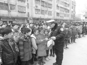 据了解,七一路派出所交巡警大队的交警将先后为辖区各中小学的学生上交通安全课,讲解怎样过马路才安全,树立学生的交通安全意识。 晚报记者 朱东一 摄