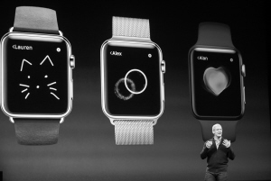 3月9日,在美国加州旧金山,苹果公司首席执行官蒂姆·库克在发布会上介绍Apple Watch。