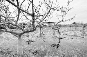 这是3月9日在西班牙萨拉戈萨省拍摄的被洪水淹没的果园。