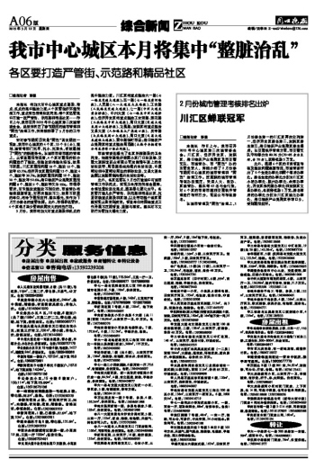 我市中心城区本月将集中“整脏治乱”