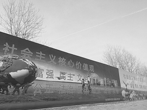 据市文明办相关负责人王建介绍,去年以来,我市以城市主次干道的户外大型喷绘广告、大型LED显示屏、灯箱灯杆广告、施工围挡等为载体,大力宣传社会主义核心价值观。社会主义核心价值观不仅上了报纸电视和社区宣传栏,也走进了公园广场、车站学校、酒店商场,同时也上了出租车、公交车和长途客车。广大市民耳濡目染,在长期的潜移默化中受到正能量的熏陶,实现从街头走进人们的心头。